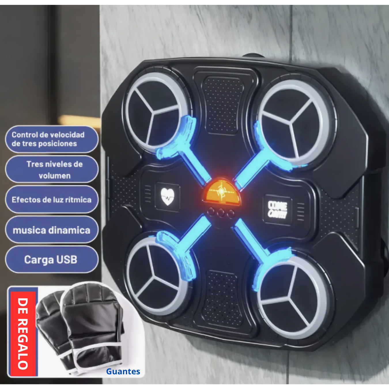 - Protección de seguridad con almohadillas de esponja y guantes de boxeo incluidos.